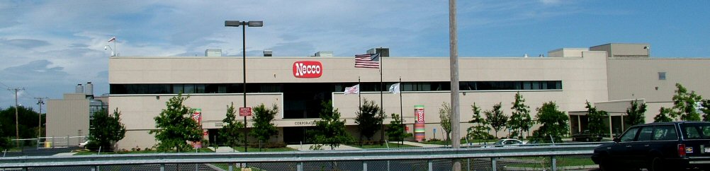 Imagine our delight as we tooled out of Boston heading for Maine when we discovered, right in front of us, the NECCO factory. We had known it was somewhere in the area, but we hadn't planned to just drive right by it. We were late & tired, so Snackette dutifully marked it down in the ASF Journal, for the return trip. Unfortuntely, the Candy Shoppe is closed on Sundays, the day we swung back by and took pictures.